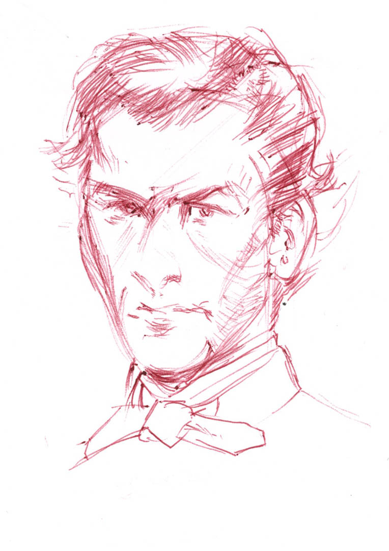 With all this drama and excitement, and my experience as an illustrator and designer, it wasn’t a stretch for me to consider putting their story together into a graphic novel. With that in mind, my research would expand to include not only my family history, but the Civil War as a whole, the people Richard and John encountered, technical details about the telegraph, and just about anything I came across that could help me build and describe the world of the early 1860’s. Shown here are my first forays into drawing our two heroes. The one on the left is Richard in his early 30’s. The one of the right is John at age 15.